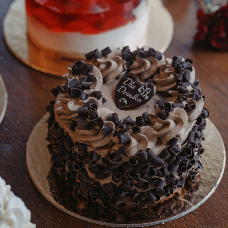 Tort dla Dziadka jest o smaku legendardnego, poznańskiego brzdąca. O średnicy 16 cm. Około 4-6 porcji.